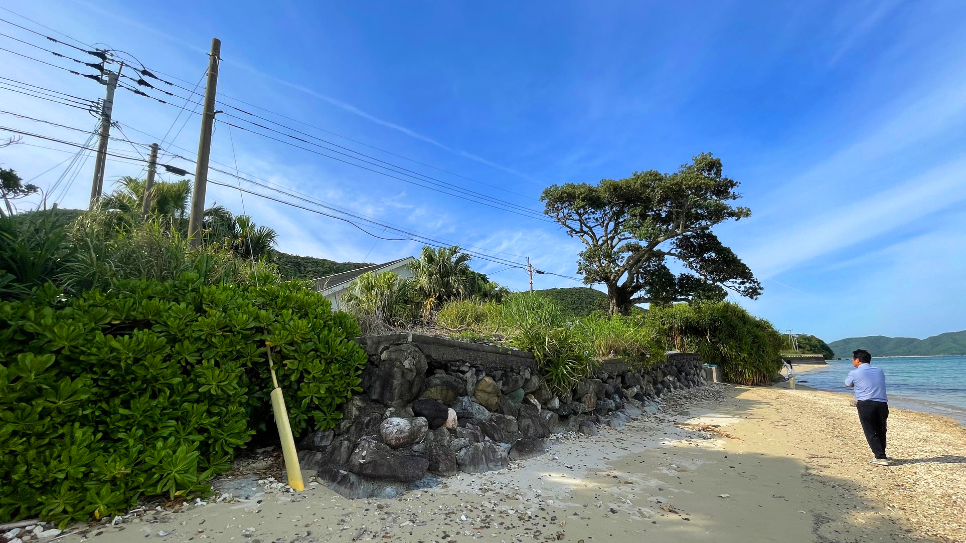 赤尾木湾に面した海沿いのデッキと土地建物。敷地の前には大変美しい砂浜とライトブルーの遠浅の海が広がります。アクセスもわかりやすく、水道・電気・浄化槽などの生活インフラも整っているため、ゲストハウスへのリノベーションなどに最適。
